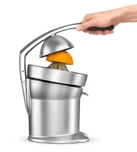 The Breville Citrus Press Pro is one of the easiest citrus juicers we’ve ever tested. With its power-assisted lever, no hard pressing is required. So even if you don’t have much hand or arm strength, the machine still squeezes limes, oranges, and grapefruits nearly dry with minimal effort.