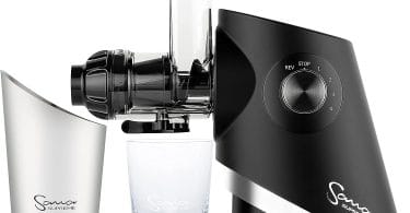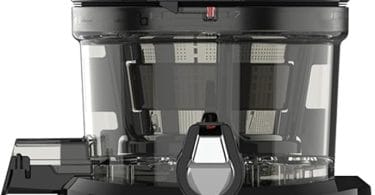 Sana 727 is a horizontal juicer and is leafy greens specialist. It is very easy to clean (about 1–1.5 minutes), but it does require pre-cutting because of its small feed chute. It’s not ideal for mostly-fruit juicing.