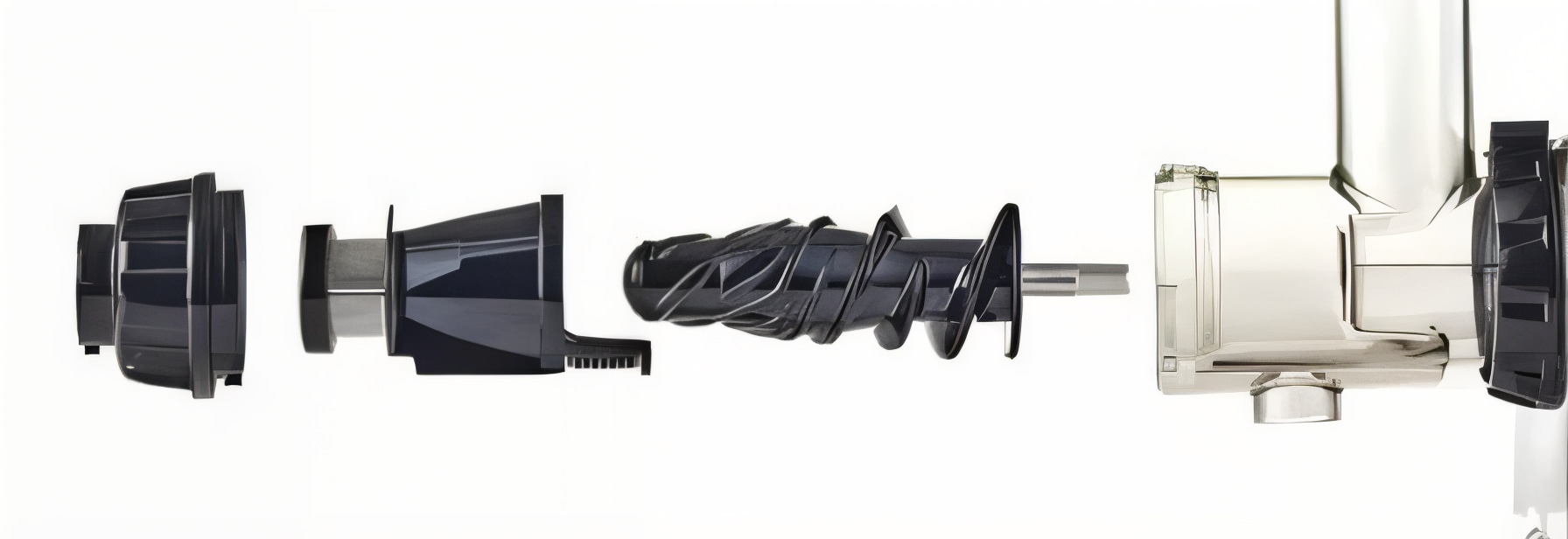 The juicer has very few parts to deal with— end cap, juicing screen, auger, and the blank end. Everything comes apart quickly and fits back together just as easily.