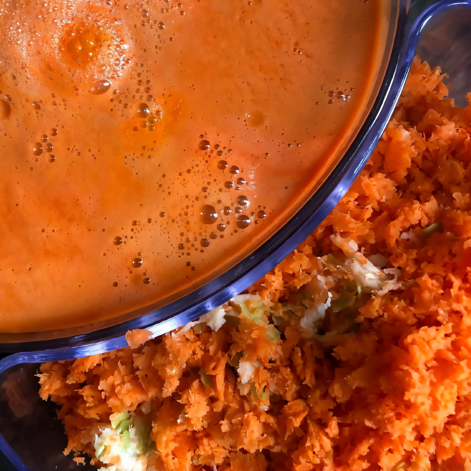 Ripe pineapple, however, did cause some backing up. That’s typical for horizontal juicers when processing very soft fruits. The fix is simple: alternate soft fruits with something hard or fibrous like carrots, celery, or ginger. A rhythm like pineapple → celery → pineapple kept everything flowing smoothly.